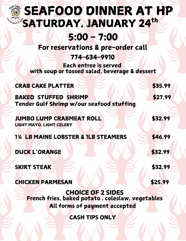 Seafood Dinner at HP – Saturday, January 24th