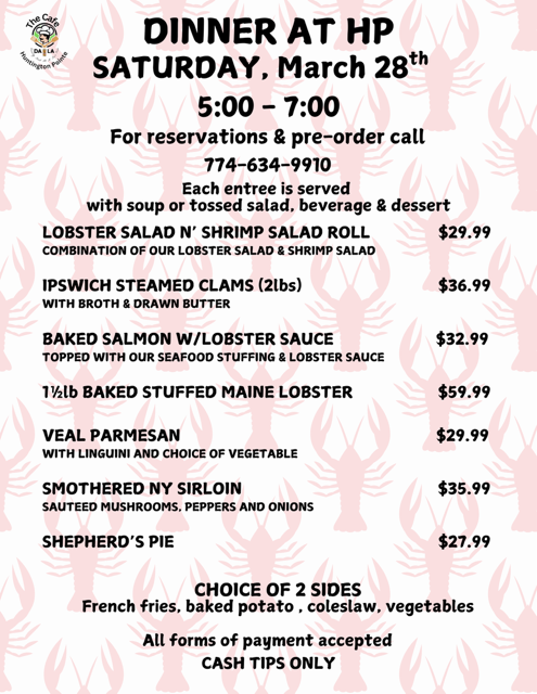 Dinner at HP – Saturday, March 28th